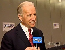 Says Jonathan Pollard deserves leniency but not a pardon In an exclusive Shalom TV interview, US Senator Joseph R. Biden Jr. (D-DE) emphatically stated his commitment to the State of Israel, calling the country "the single greatest strength America has in the Middle East." Senator Biden further stressed that without Israel, one could only imagine how many battleships and troops America would have to station in the Middle East. Meeting with Shalom TV President Rabbi Mark S. Golub in Washington, DC, the candidate for the Democratic Party's presidential nomination said that it's insulting for any American to suggest that Israel is somehow the cause of the war in Iraq. "If, tomorrow, peace broke out between Israelis and Palestinians, does anybody think there wouldn't be a full-blown war in Iraq? And, conversely, if Iraq were transported to Mars, does anyone think there would not be terrorism visited upon the Israelis every day? "So let's get it straight. Israel is not the cause of Iraq. Iraq being settled or not settled has nothing to do with Israel's conduct." The Senator also expressed a sensitivity and empathy for Israelis who have had to live with terrorism. "[From 9/11], Americans can taste what it must feel like for every Israeli mother and father when they send their kid out to school with their lunch to put them on a bus, on a bicycle or to walk; and they pray to God that cell phone doesn't ring."